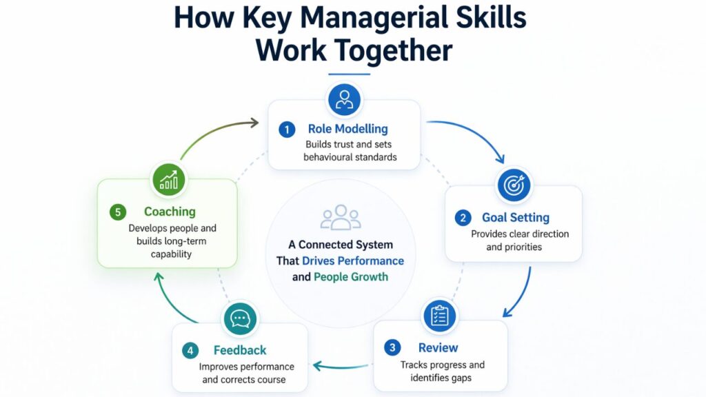 If you look at the bigger picture, coaching doesn’t stand alone; it connects deeply with other managerial capabilities.